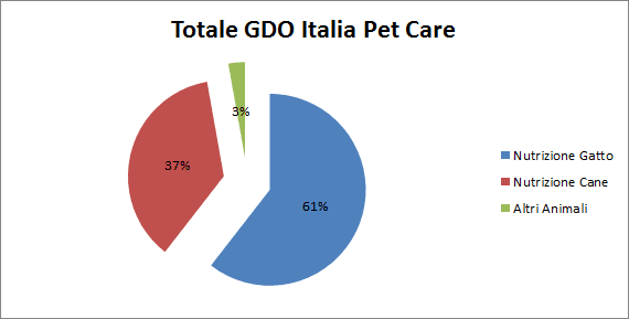 Gli alimenti per il cane rappresentano il 37% del totale delle vendite, con circa 285 milioni di euro fatturati nella Grande Distribuzione. Secondo Assalco (l’associazione nazionale Imprese per l’alimentazione e la cura degli animali da compagnia) il mercato Italia vale 838 milioni di euro il 47% del totale Pet Food, di cui il 34% sviluppato in GDO. Significativamente inferiore rispetto allo sviluppo dell’alimentazione gatto (in GDO) che copre quasi il 48% delle vendite totali gatto Italia.