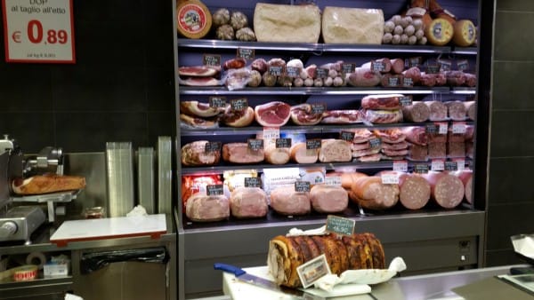 Il banco gastronomia e formaggi semplice ma curato con maggiore ampiezza nei formaggi che nei salumi, ma naturalmente l’assortimento è ampio nel libero servizio.