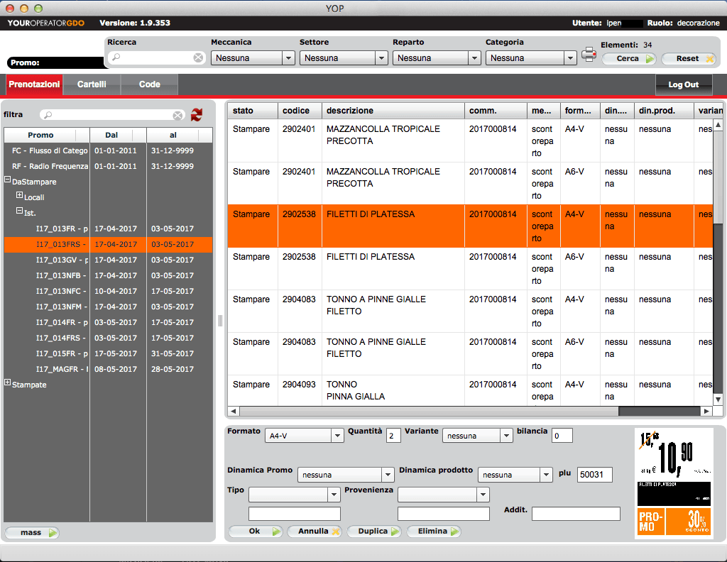 Le nostre soluzioni applicative (software) consentono alle GDO di migliorare i processi interni utili a rendere efficiente tutto il work-flow che intercorre dall’acquisizione del dato di un determinato articolo/prodotto, la sua lavorazione, fino alla sua rappresentazione grafica per la realizzazione del materiale promozionale (volantini), del materiale POP (cartelli/locandine) digital signage ecc.