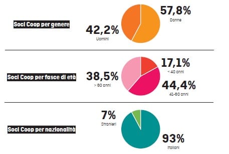 I soci Coop sono 6,8 milioni in tutta Italia che significa che oltre un italiano su dieci è socio Coop; si tratta di una tendenza in crescita perché nel 2017 sono state accese 237 carte in più sull’anno precedente e che, come previsto dalla legge 1/2014, art. 17/bis, recepita negli Statuti Sociali, nei primi mesi del 2017 i Consigli di Amministrazione delle Cooperative hanno deliberato l’esclusione dei soci inattivi, cioè coloro che nell’esercizio sociale precedente non abbiano intrattenuto con la Cooperativa almeno una delle attività su cui si fonda il rapporto mutualistico (fare la spesa, partecipare a un’assemblea, essere socio prestatore).