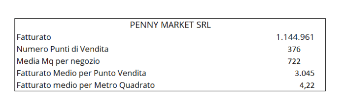 Nel caso di Penny Market nel 2018 la media del fatturato per punto di vendita è stata di