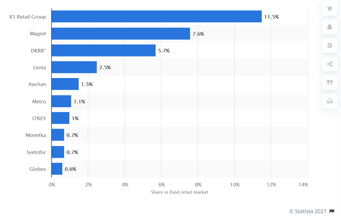 Nel mass market russo, così come in tutti i paesi, le vendite, durante la fase pandemica acuta, hanno subito un’impennata soprattutto in alcune categorie: mentre in tutti i principali paesi del mondo le crescite sono state su categorie relative a prodotti sanitari e di pulizia della casa, in Russia i maggiori incrementi sono stati realizzati dagli energy drinks (330%), dalla pasta di semola con crescite del 273%, ed infine i detergenti del 197% (Fonte Nielsen).