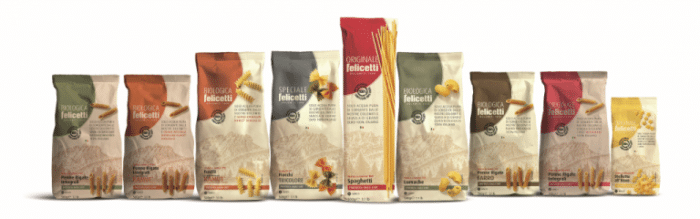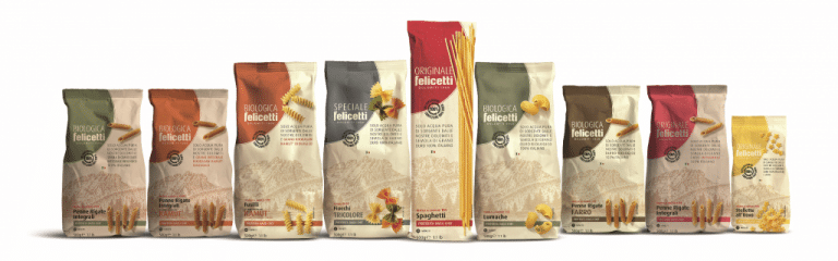 E’ il caso del nuovo packaging Felicetti, in carta naturale di pura cellulosa, con trattamento termosaldante a base sintetica ad acqua, certificata FSC e PEFC, proveniente da foreste gestite responsabilmente, riciclabile al 100%.