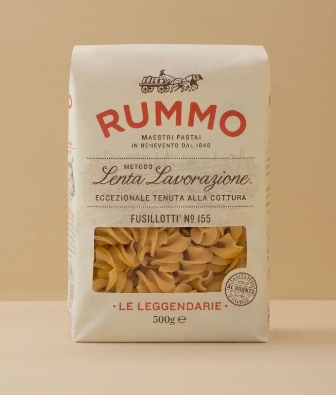 Altro tratto distintivo, richiamato nel packaging attraverso slogan e pay off, è quello della modalità di produzione, della lavorazione. Vero punto di forza di brand come Rummo e De Cecco. Sulla confezione di pasta Rummo la scritta “lenta lavorazione”, vergata con un font in corsivo dal gusto retrò (per evocare l’artigianalità del prodotto) campeggia in bella vista.