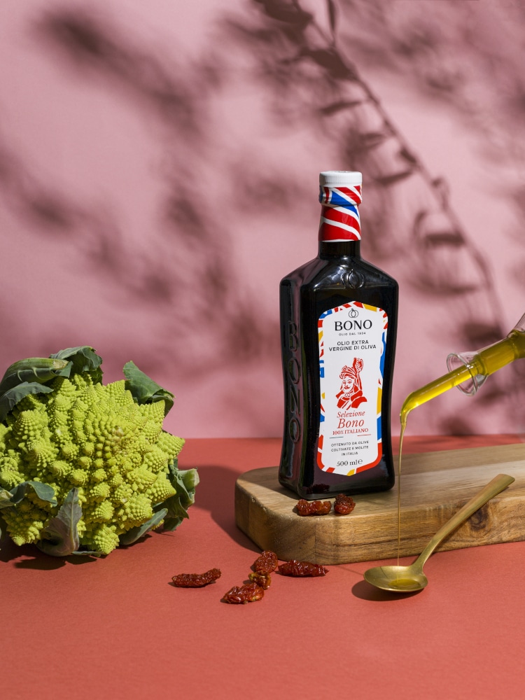 “Alla base di questo progetto c’è la volontà di rafforzare il posizionamento del marchio Bono, creare un’immagine di marca siciliana distintiva e facilmente riconoscibile dal consumatore incrementandone la visibilità a scaffale attraverso le caratteristiche cromatiche tipiche della Sicilia in grado di spiccare rispetto al contesto espositivo tradizionale rendendolo quindi più gioioso”, spiega Carmelo Zagarrì, Direttore Commerciale e Marketing della società Bonolio Sas.