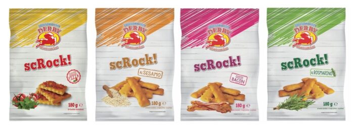Altra novità è la linea vending: qui nasce lo ScRock gusto pizza, in comode porzioni da g 30, per portarle sempre con sé. Presto in arrivo anche nei gusti: rosmarino, sesamo, bacon.