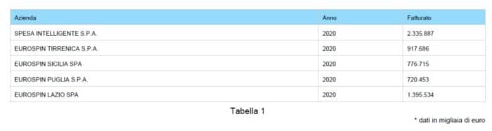In questo studio prenderemo in considerazione i risultati delle imprese che operano sul territorio e non la holding, e le cinque aziende sono: Spesa Intelligente Spa, che ha sede a Verona ed i depositi, che sono quattro, ubicati a Romentino (NO), San Martino Buon Albergo (VR) sede della società, Chions (PN) e quello in Sardegna a Olbia (SS), ed il suo ambito operativo è tutto il nord sino alla Romagna.