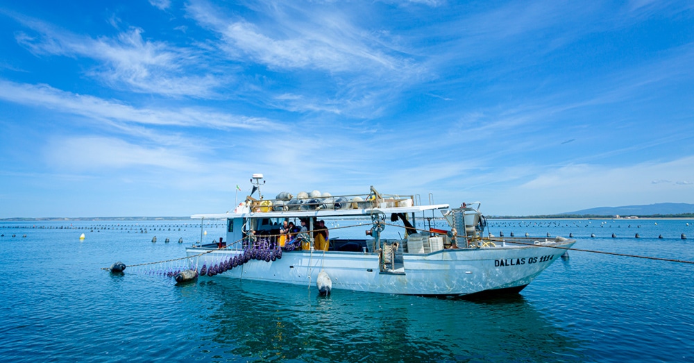Nei nostri allevamenti nel Golfo di Oristano, le Nieddittas percorrono la loro vita sotto la sorveglianza dei nostri pescatori che seguono l’allevamento giorno dopo giorno, svolgendo tutte le attività che servono per una crescita sana e sicura dei mitili. Periodicamente, i filari dei nostri allevamenti nel Golfo di Oristano vengono capovolti per fare in modo che tutte le cozze ricevano la stessa quantità di luce e crescano quindi in modo omogeneo; viene controllato lo stato generale dell’impianto, per proteggere i mitili dai pesci predatori e per tenere sotto controllo eventuali problemi creati dalle mareggiate; vengono inoltre effettuati tutti i controlli e le analisi necessari a monitorare lo stato di salute delle acque e delle cozze.