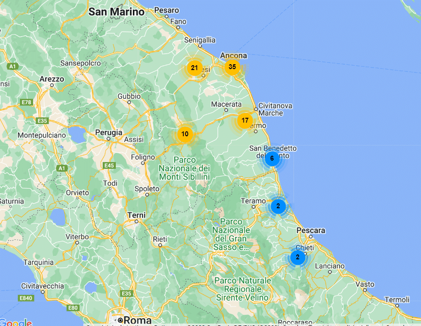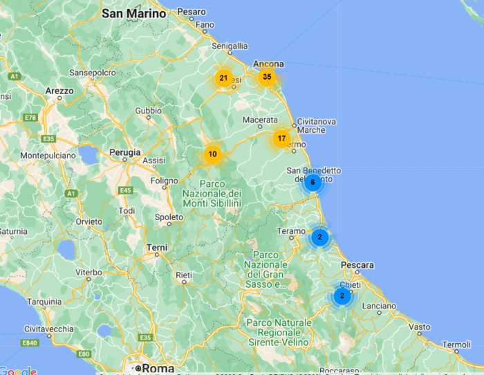 Mappatura dei punti vendita del gruppo Ce.Di. Marche. Fonte: Mappa della GDO di GDONews