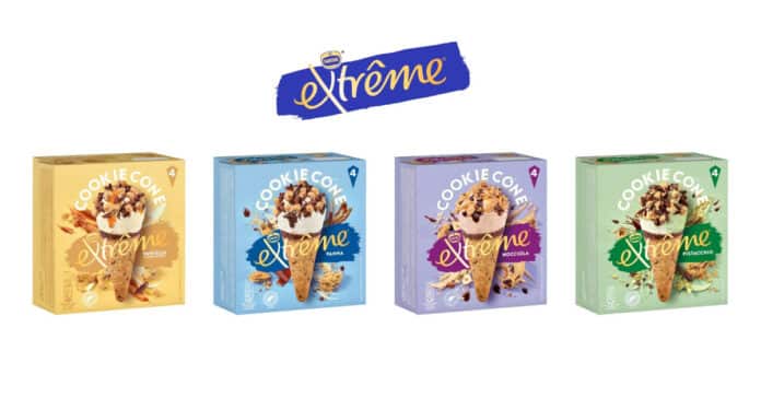 Froneri, seconda azienda a livello globale nel comparto dei gelati confezionati e l’unica a livello mondiale specializzata esclusivamente in questo tipo di produzione, ha lanciato il suo nuovo cono Extrême sul mercato italiano. La particolarità di questo prodotto risiede proprio nella cialda, dal tratto innovativo e inedito: alla composizione tradizionale si sostituisce un cono fatto di croccante biscotto cookie, in grado di mantenere la sua fragranza a lungo nel tempo.