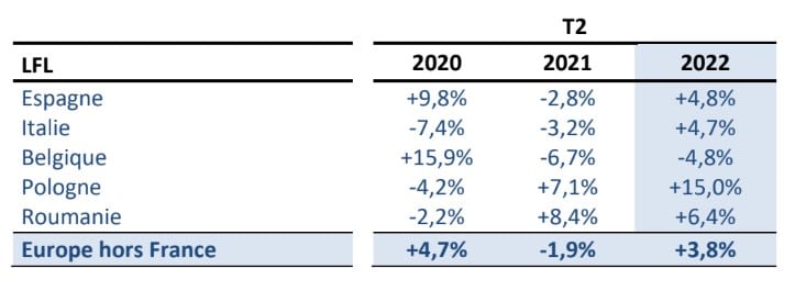 In Europa, le vendite like-for-like sono aumentate del +3,8% rispetto al secondo trimestre 2021.
