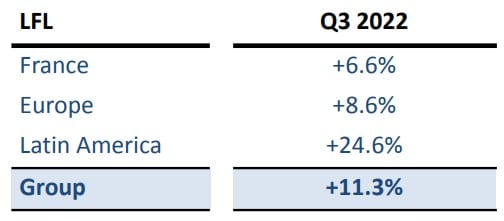 In Europa, le vendite di LFL sono aumentate dell’8,6% rispetto al terzo trimestre 2021, con un aumento in tutti i paesi: