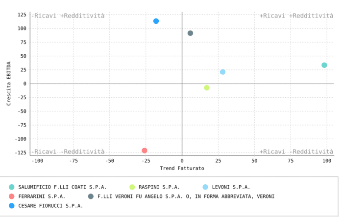 Levoni ha sperimentato una crescita del fatturato del 28% e dell’EBITDA del 21%. Ferrarini ha avuto problemi, con una diminuzione dei ricavi del 26% e una diminuzione dell’EBITDA di oltre il 121%.
