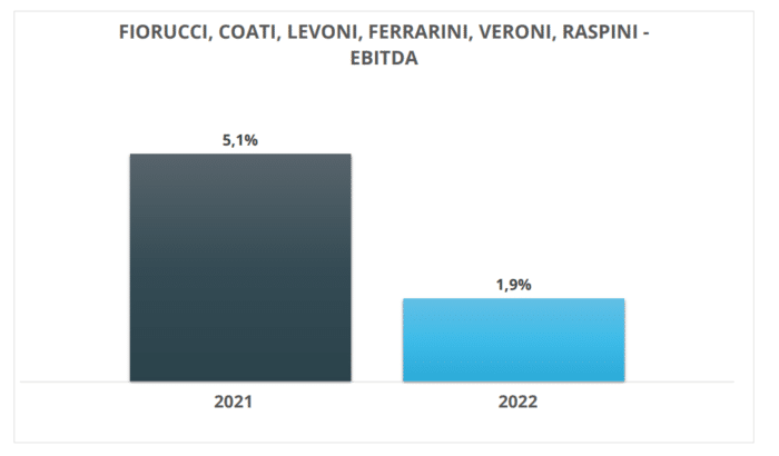 La grave conseguenza di questi costi aggiuntivi si riflette ovviamente sulla media ponderata degli EBITDA che nel 2022 è calata da 5,1% al 1,9%, una discesa libera.