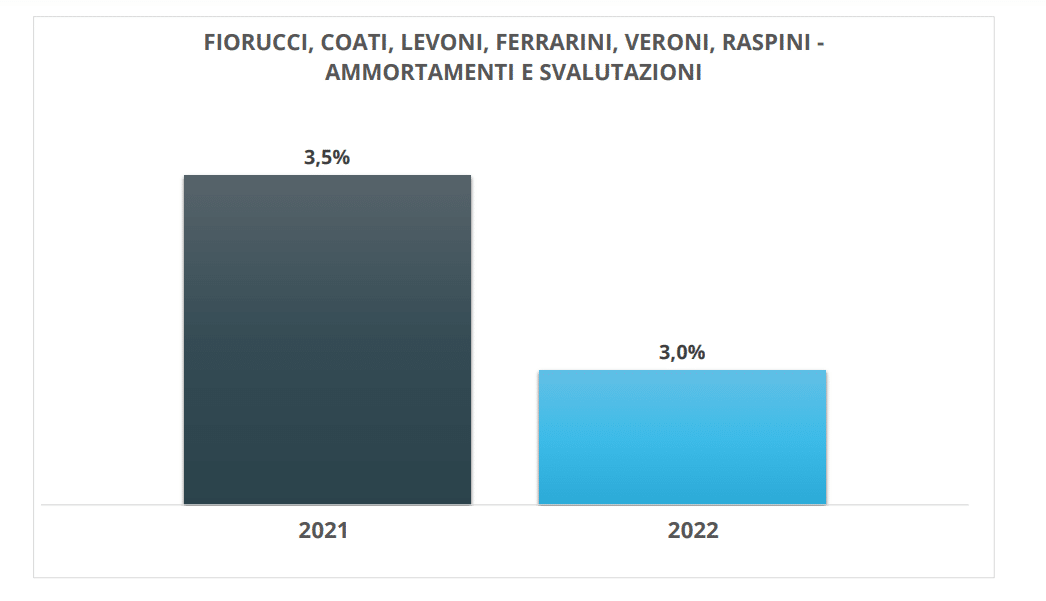 E’ molto probabile che il calo sia stato più netto se, come si può notare nel prossimo grafico, le imprese si sono trovate nelle condizioni di ridurre l’uso delle svalutazioni e degli ammortamenti, che nel 2022 sono state pari al 3%, rispetto al 3,5% del 2021.