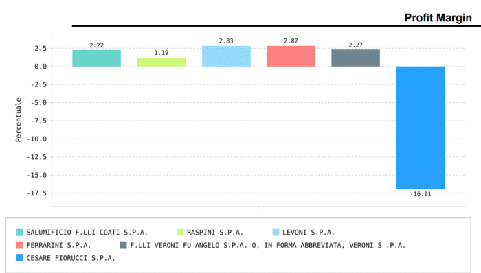 Veroni ha registrato un margine di profitto del 2,2% e un EBITDA margin dell’4,5%, con spese per servizi simili a quelle di Fiorucci ma con costi del lavoro notevolmente inferiori.