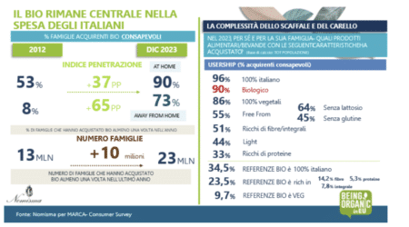“La Distribuzione Moderna ha un ruolo determinante per lo sviluppo del biologico dal momento che veicola quasi il 60% della spesa domestica degli italiani e sviluppa assortimenti a marchio proprio in grado di conquistare una quota di mercato significativa, oltre alla fiducia del consumatore. Ma il supporto allo sviluppo non si ferma ai numeri di vendite e assortimenti: la distribuzione moderna rappresenta, infatti, un veicolo formidabile per garantire al consumatore un flusso informativo che consenta di costruire una completa mappa valoriale del biologico declinata sia sul prodotto che sul metodo produttivo nonché le relative implicazioni ambientali e sociali. E le attività sul punto vendita rappresentano certamente un vettore determinante in tal senso” – ha dichiarato Silvia Zucconi, Chief Operating Officer Nomisma.