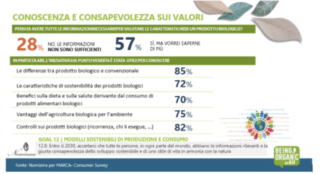 In questa logica la richiesta di conoscenza del consumatore arriva direttamente dal consumatore: il 28% ritiene di non avere informazioni sufficienti per valutare le caratteristiche del prodotto bio e un ulteriore 57%, nonostante abbia una buona consapevolezza di prodotto, vorrebbe comunque avere maggiori informazioni.