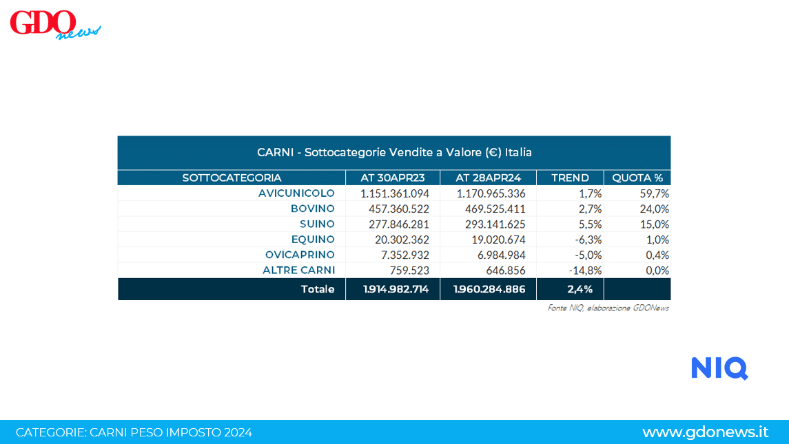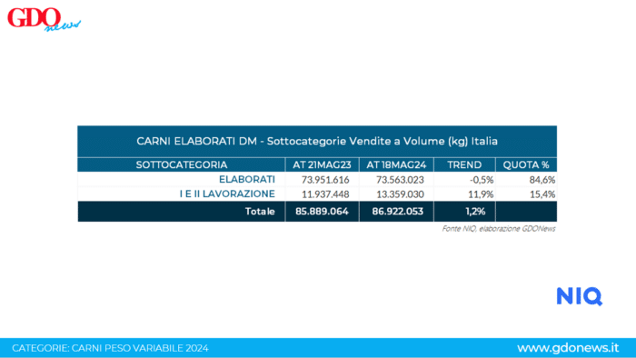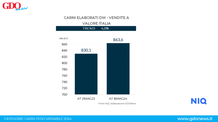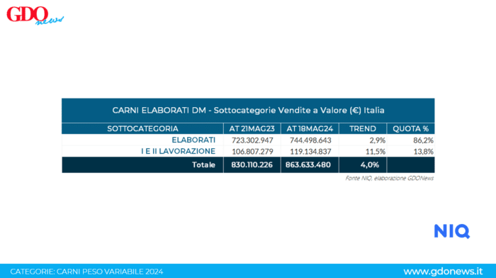 Le carni a peso variabile, invece, sono passate da 830 milioni di Euro a 863 milioni di Euro, con una crescita del 4%. Il peso variabile ha quindi un tasso di crescita superiore rispetto al peso imposto sebbene il suo peso all’interno della categoria risulti decisamente inferiore.