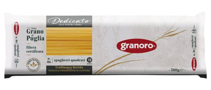 La gamma si arricchisce anche degli Spaghetti Quadrati “Dedicato”, trafilati al bronzo e con una sezione quadrata che offre maggiore tenacità e capacità di trattenere i condimenti. Sono realizzati con grano 100% pugliese da filiera certificata. Questo formato sta riscuotendo grande interesse tra gli operatori e si presta a numerose interpretazioni gastronomiche, confermandosi una scelta versatile e apprezzata anche nei mercati internazionali.