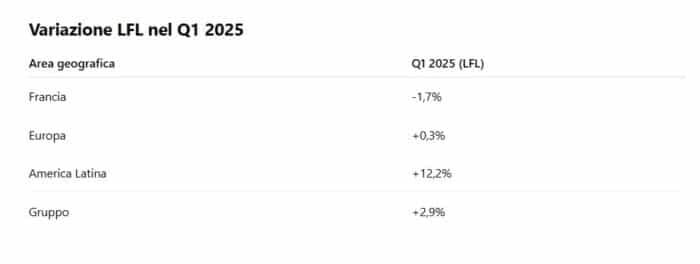 Le tendenze osservate durante il trimestre sono in linea con il contesto descritto a febbraio, in occasione della pubblicazione dei risultati annuali 2024. Il carattere locale dell’attività del Gruppo fa sì che l’esposizione diretta alle recenti tensioni internazionali sia limitata. In questo contesto, Carrefour conferma i suoi obiettivi 2025 e prevede una leggera crescita di EBITDA, Reddito Operativo Ricorrente e Free Cash Flow netto.