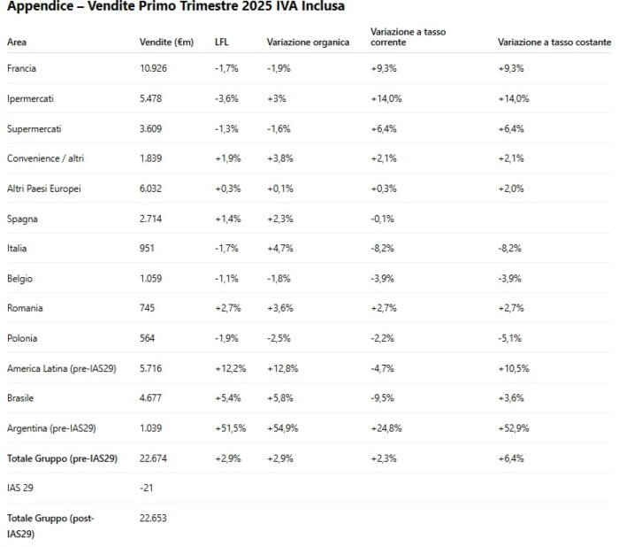 Nel primo trimestre del 2025 Carrefour segna un andamento positivo, confermando la solidità della propria traiettoria strategica. Il colosso della distribuzione chiude il periodo con una crescita delle vendite a parità di perimetro pari al +2,9%, dimostrando una capacità di tenuta trasversale ai principali mercati in cui opera.