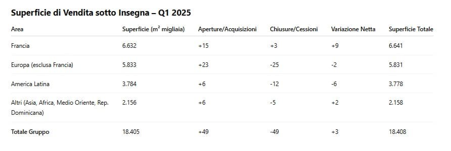 In Polonia (-1,9% LFL), il miglioramento sequenziale iniziato nel Q4 2024 è stato confermato anche nel Q1 2025, in un contesto ancora molto competitivo e con la prosecuzione degli investimenti commerciali di Carrefour.