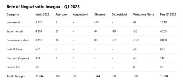 Il calo nel non food (-2,1%) è dovuto a un effetto base elevato nei prodotti elettronici, legato al boom di vendite di TV digitali nel Q1 2024 per la fine delle trasmissioni analogiche.