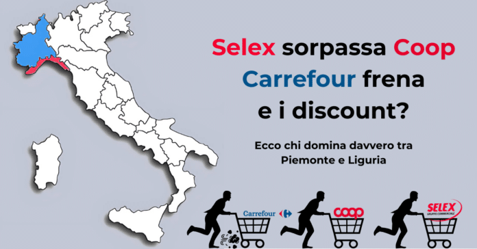 Dall’altro lato, è altrettanto interessante capire cosa accade nel Nord-Ovest escludendo la Lombardia, ovvero focalizzandosi su Piemonte e Liguria. È in queste regioni che emergono con più evidenza alcune dinamiche evolutive della grande distribuzione, in particolare per quanto riguarda la forza dei grandi formati, la concentrazione del mercato attorno a pochi leader, l’incidenza reale del discount e le strategie territoriali delle centrali d’acquisto.