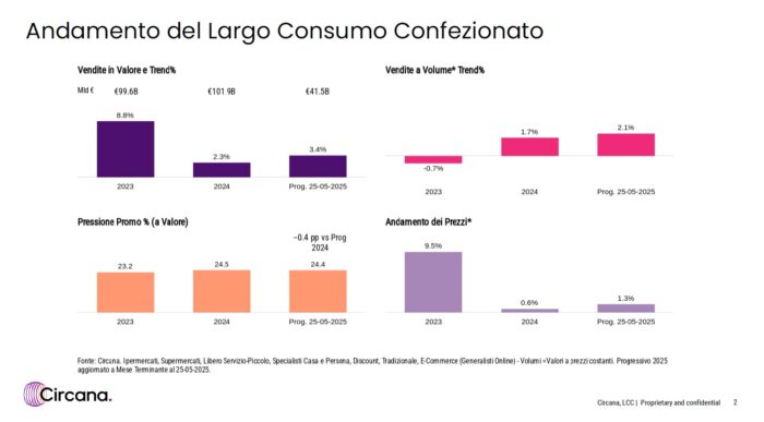Il Largo Consumo Confezionato entra nel 2025 con un segnale chiaro: la crescita è tornata, ma questa volta non è frutto dell’inflazione bensì della ripresa reale dei consumi. L’analisi condotta da Circana rivela come il settore, dopo due anni di turbolenza, stia ritrovando un equilibrio virtuoso.
